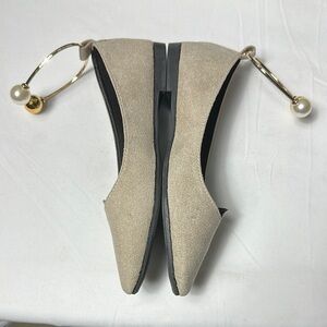 NIB Tan Flats with Pearl Accent Ankle T-Strap Detail Sz 39