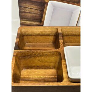 NIB The Cellar Divided Server – Wood Tray with White Removable Ceramic Bowl