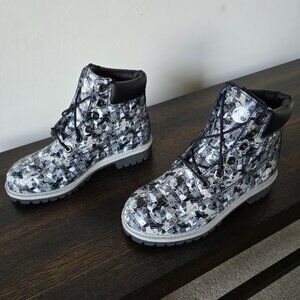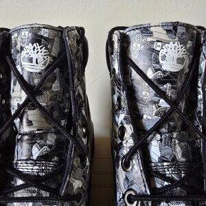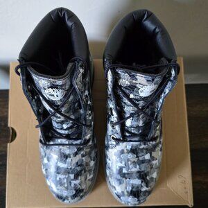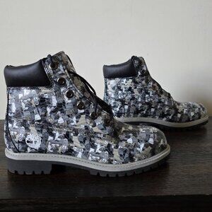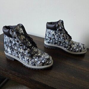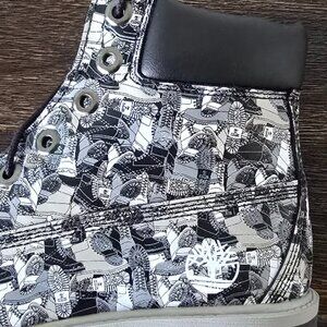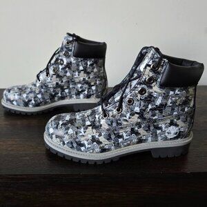 NIB Timberland Black White & Gray Camo Patterned Leather 6" Lug Sole Boots