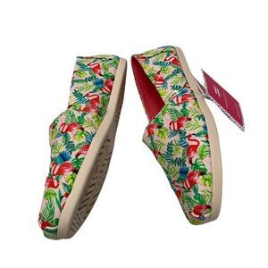 NIB Toms x Paper Source Alpargata Slip-On Sz 9 Pink Flamingos