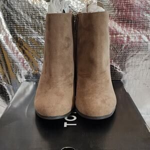 NIB Torrid Faux Suede Round Toe Ankle 3" Heel Bootie Taupe (Wide) Plus Size: 8W
