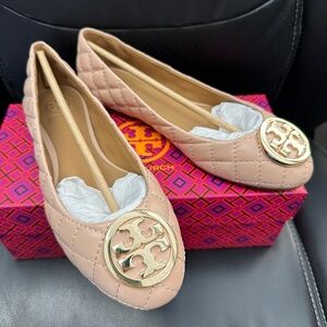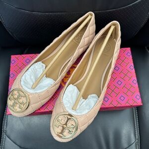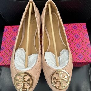 NIB! Tory Burch 64092 Benton 2 Quilted Ballet Flat Nappa Leather Goan Sand Size7