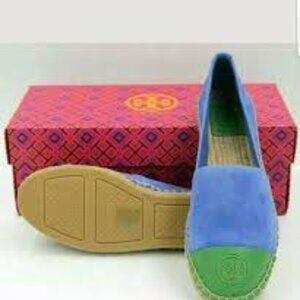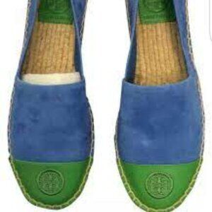 NIB Tory Burch – Colorblock Espadrille Suede/Leather REGAL BLUE/LEAF