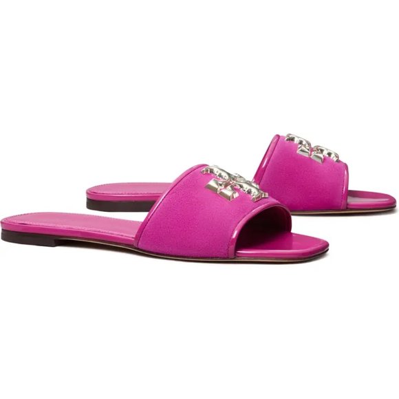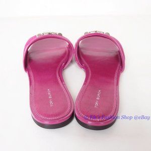 NIB Tory Burch Eleanor Leather Slide Fuchsia Hot Pink US 8 8.5 9 9.5 10 AUTHENTC