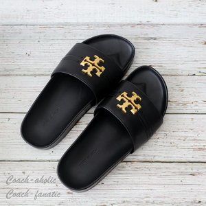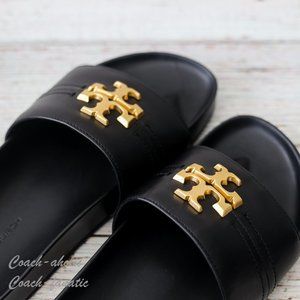 NIB Tory Burch Everly Anatomic Cloud Leather Slide Sandal in Black Size 7