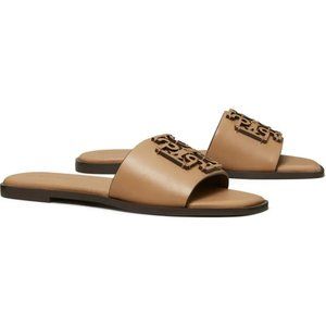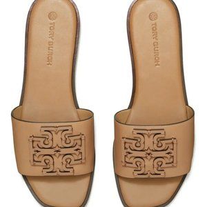 ā¤ļø NIB Tory Burch Ines Logo Slide Leather Sandal Almond Flour 7.5 8 8.5 9 9.5 10