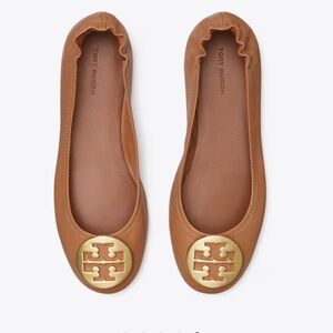 NIB Tory Burch MINNIE TRAVEL LEATHER BALLET Flat Shoe Royal Tan Gold 8