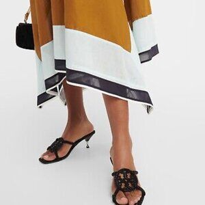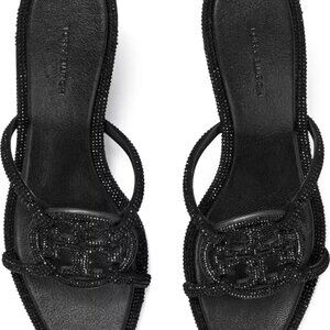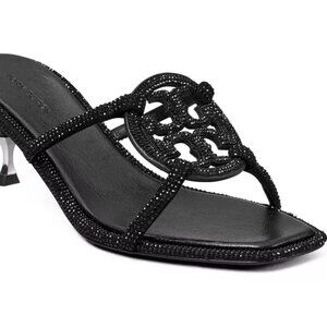 NIB Tory Burch Miller Bombé PAVE Kitten Heel Slide Sandal BLACK