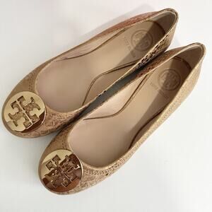 NIB Tory Burch Reva Ballet Flats Metallic Cobra Size 6.5 Bronze NEW