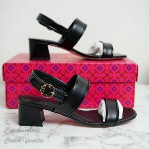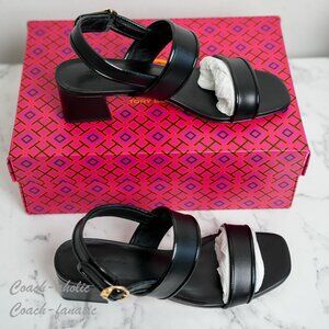 NIB Tory Burch Selby 45MM Napa Leather Sandal in Perfect Black/Gold