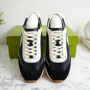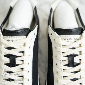 NIB Tory Burch T-Logo Nylon Suede Vintage Sneaker 2.0 in Black/White