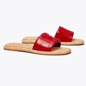 NIB Tory Burch T-Sport Double Slide Leather sandals Red