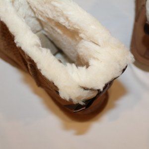NIB UGG CHEETAH BAILEY BOW MINI SUEDE SHEARLING LINED ANKLE BOOTS CHESTNUT