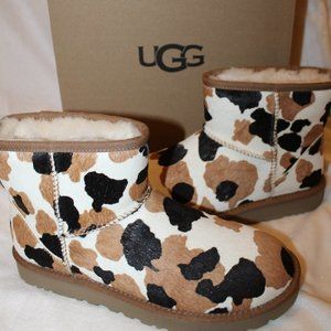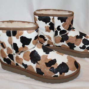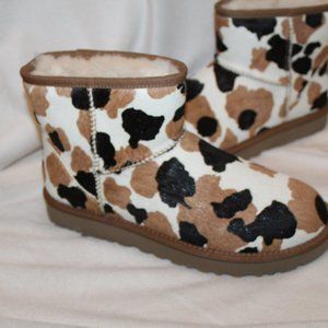 NIB UGG COW CALF HAIR MINI SHEARLING LINED WINTER BOOTS BLACK CHESTNUT