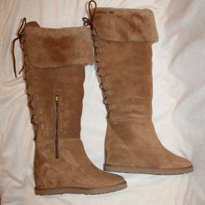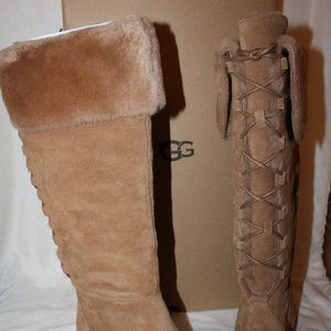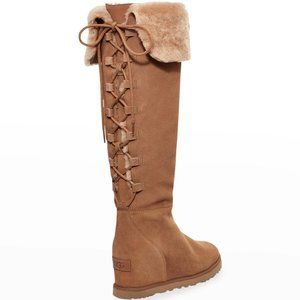 NIB UGG FEMME OVER THE KNEE WOMEN'S LACE UP SUEDE SHEARLING CUFF BOOTS CHESTNUT