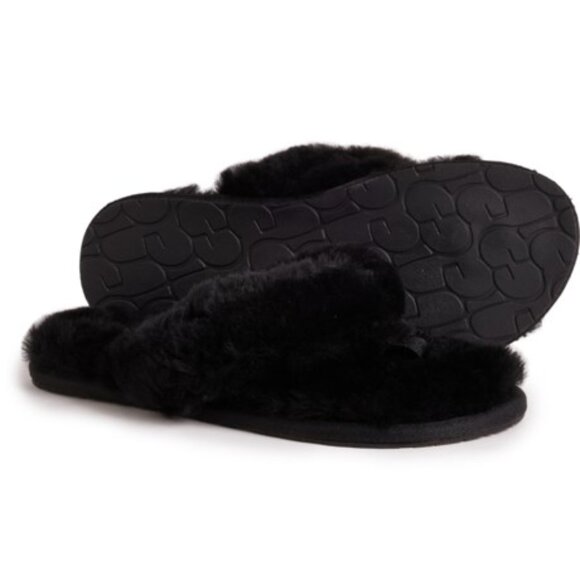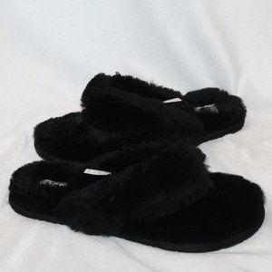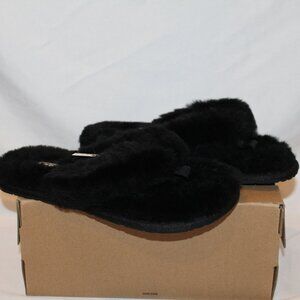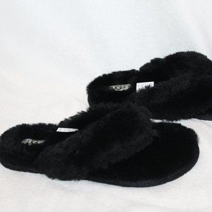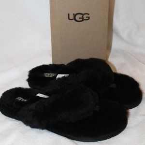 NIB UGG FUR FLIP FLOP SANDALS SLIPPERS BLACK