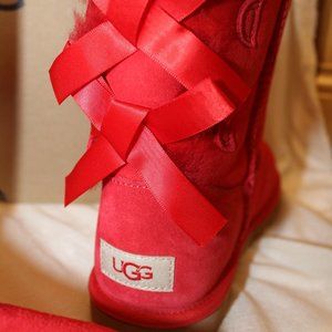 NIB UGG GIRL'S BAILEY BOW SUEDE SHEARLING CLASSIC SHORT BOOTS RED