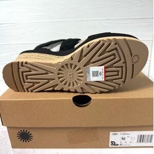 NIB UGG Ileana Ankle Strap Espadrille Platform Wedge Sandals Black Suede 10