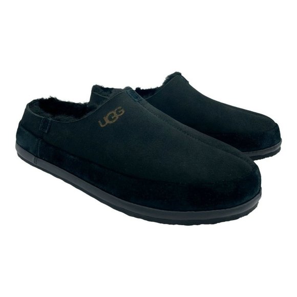 NIB UGG MEN'S PARKDALE SLIP ON SUEDE SHEARLING LINED CLOG SLIPPERS BLACK