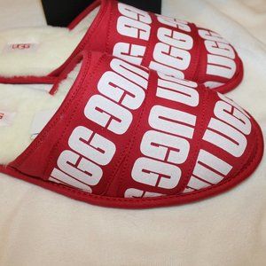 NIB UGG MEN'S SCUFF LOGO RED WHITE SLIPPERS