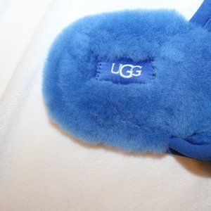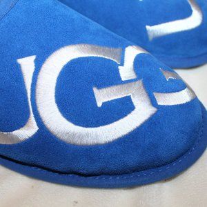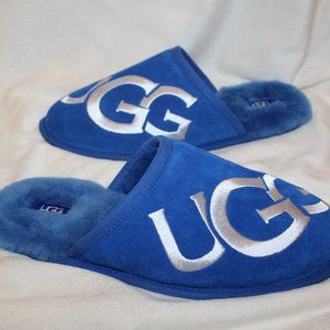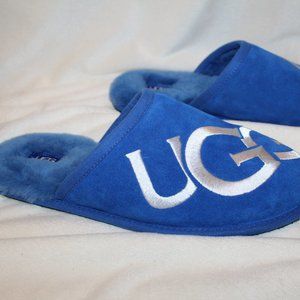 NIB UGG MEN'S SUEDE SHEARLING LOGO SLIP ON SLIPPERS ROYAL BLUE WHITE