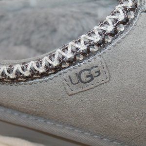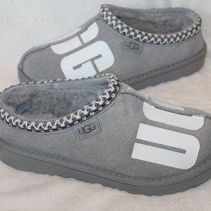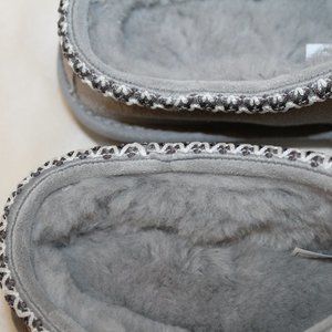 NIB UGG MEN'S TASMAN LOGO SUEDE SHEARLING SLIP ON SLIPPERS GRAY