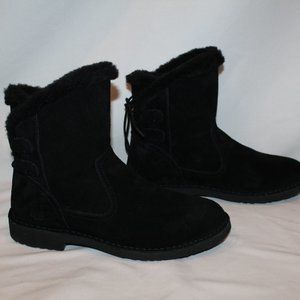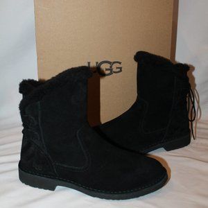 NIB UGG NAIYAH SUEDE SHEEPSKIN TIE WINTER ANKLE BOOTIE BOOTS BLACK