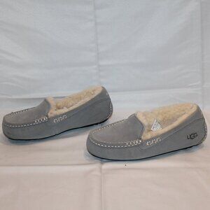 NIB UGG WOMEN'S ANSLEY SUEDE SHEARLING LINED SLIP ON SLIPPERS LIGHT GRAY 6