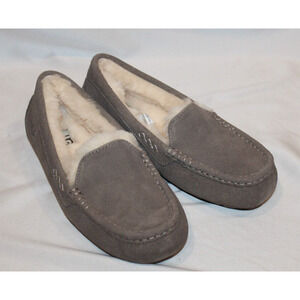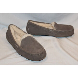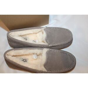 NIB UGG WOMEN'S ANSLEY SUEDE SHEARLING LINED SLIPPERS SLATE GRAY