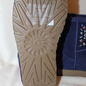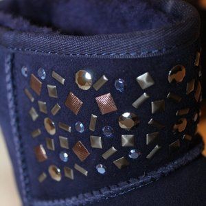NIB UGG WOMEN'S CLASSIC MINI SUEDE STUDDED SHEARLING LINED BOOTS BLUE