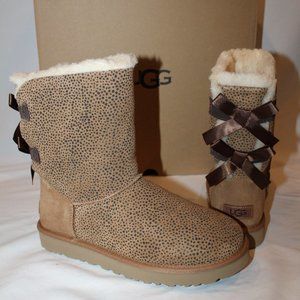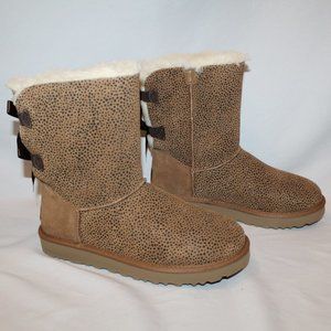 NIB UGG WOMEN'S CLASSIC SHORT CHEETAH BAILEY BOW SUEDE SHEARLING BOOTS