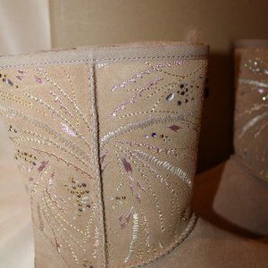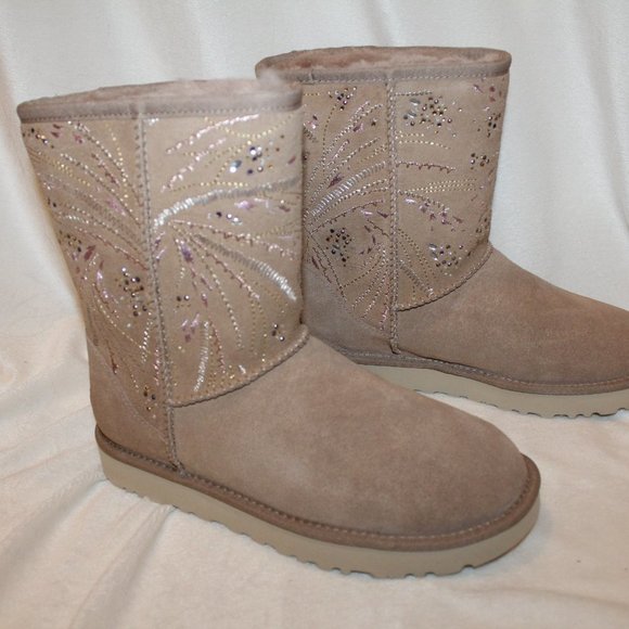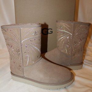 NIB UGG WOMEN'S CLASSIC SHORT GOLD BURST SUEDE SHEARLING LINED BOOTS