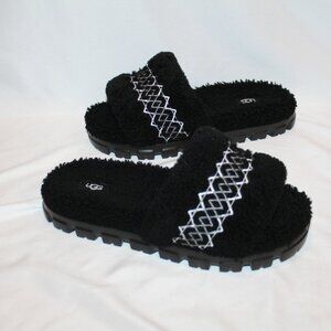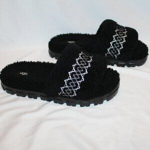 NIB UGG WOMEN'S COZETTA CURLY SHEARLING BRAID SLIPPERS BLACK