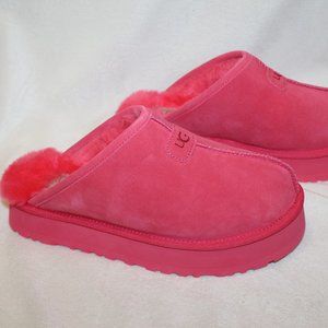 NIB UGG WOMEN'S DISCOQUETTE SUEDE SHEARLING SLIP ON PLATFORM SLIPPERS PINK
