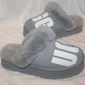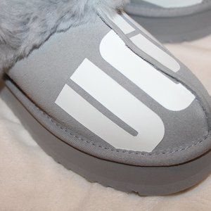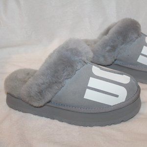 NIB UGG WOMEN'S DISQUETTE COPPD SLIP ON SUEDE SHEARLING SLIPPERS GRAY