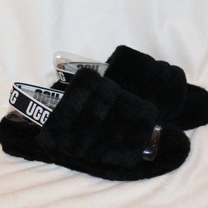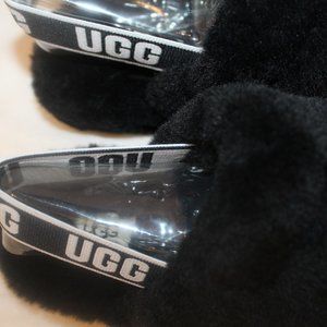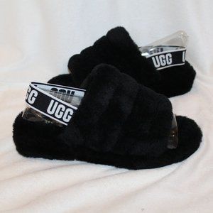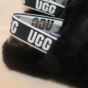 NIB UGG WOMEN'S FLUFF BLACK WHITE SLIPPER SANDALS