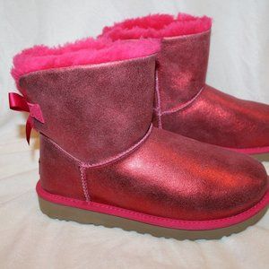 NIB UGG WOMEN'S GLISTEN MINI BAILEY BOW FUSCHIA WINTER BOOTS