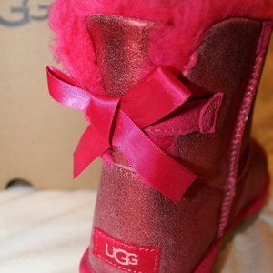 NIB UGG WOMEN'S GLISTEN MINI BAILEY BOW FUSCHIA WINTER BOOTS