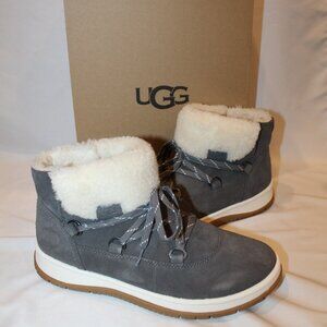 NIB UGG WOMEN'S LAKESIDER HERITAGE LACE UP SUEDE SHEARLING LINED BOOTIES GRAY
