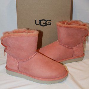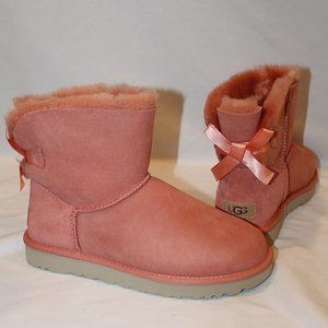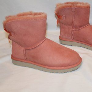 NIB UGG WOMEN'S MINI BAILEY BOW SUEDE SHEARLING LINED ANKLE BOOTS CORAL