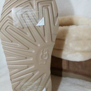 NIB UGG WOMEN'S MINI CUFF FLUFF SUEDE SHEARLING BOOTS CHESTNUT BROWN
