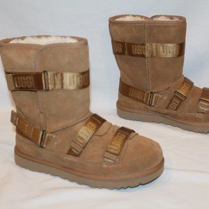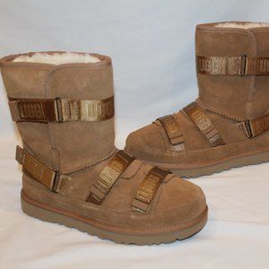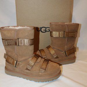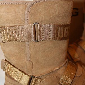 NIB UGG WOMEN'S MOTO STRAP SUEDE SHEARLING LINED CLASSIC SHORT BOOTS CHESTNUT