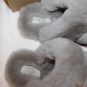 NIB UGG WOMEN'S SCUFFETTE II SUEDE SHEARLING SLIP ON SLIPPERS GRAY