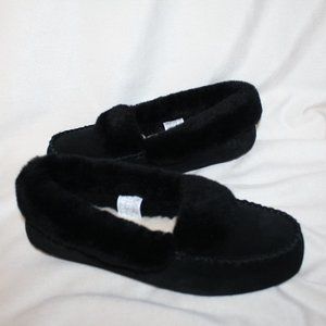 NIB UGG WOMEN'S SPILL SEAM SHEARLING SUEDE SLIPPERS BLACK