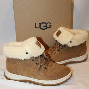 NIB UGG WOMEN'S SUEDE SHEARLING LINED LAKESIDER WATER REPELLENT ANKEL BOOTS