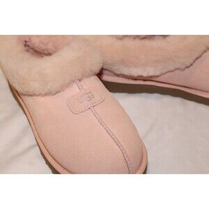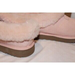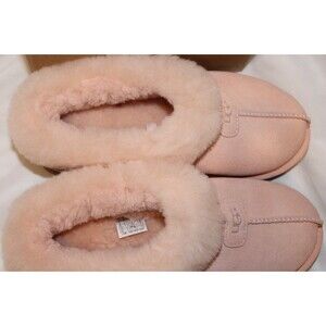 NIB UGG WOMEN'S TAZETTE SUEDE SHEARLING SLIP ON SLIPPERS PEACH NIB