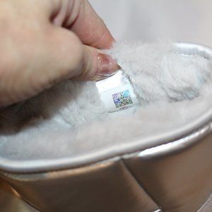 NIB UGG WOMEN'S ULTRA MINI PLATFORM PUFFER SHINY METALLIC SLIVER BOOTS