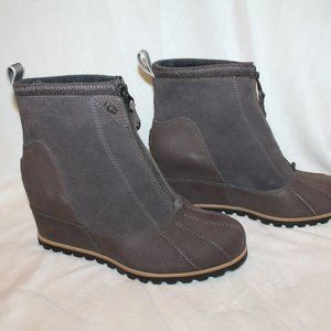 NIB UGG WOMEN'S WEDGE REGGIE SUEDE ZIP UP ANKLE BOOTS