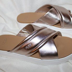 NIB UGG WOMEN'S ZAYNE LEATHER WEDGE ROSE GOLD SANDALS