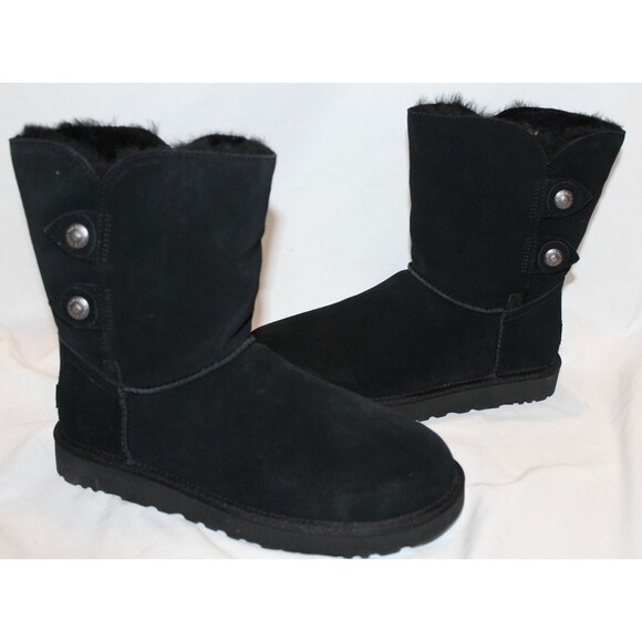 NIB UGG Women's Classic Short Marciella Button Suede Shearling Boots Black SZ 9